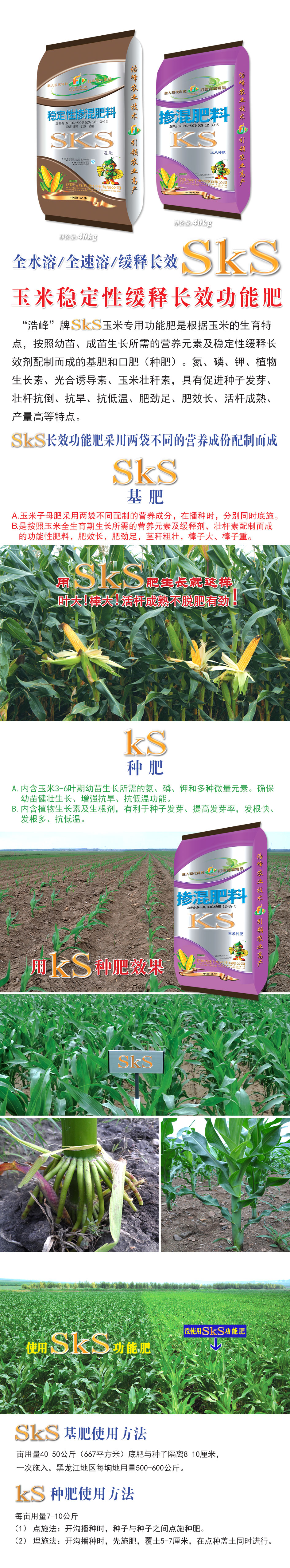 “浩峰”牌sks玉米專用功能肥是根據玉米的生育特點,按照幼苗、成苗生長所需的營養元素及穩定性緩釋長效劑配制而成的基肥和口肥(種肥)。氮、磷、鉀、植物生長素、光合誘導素、玉米壯稈素,具有促進種子發芽、壯桿抗倒、抗旱、抗低溫、肥勁足、肥效長、活桿成熟、產量高等特點。