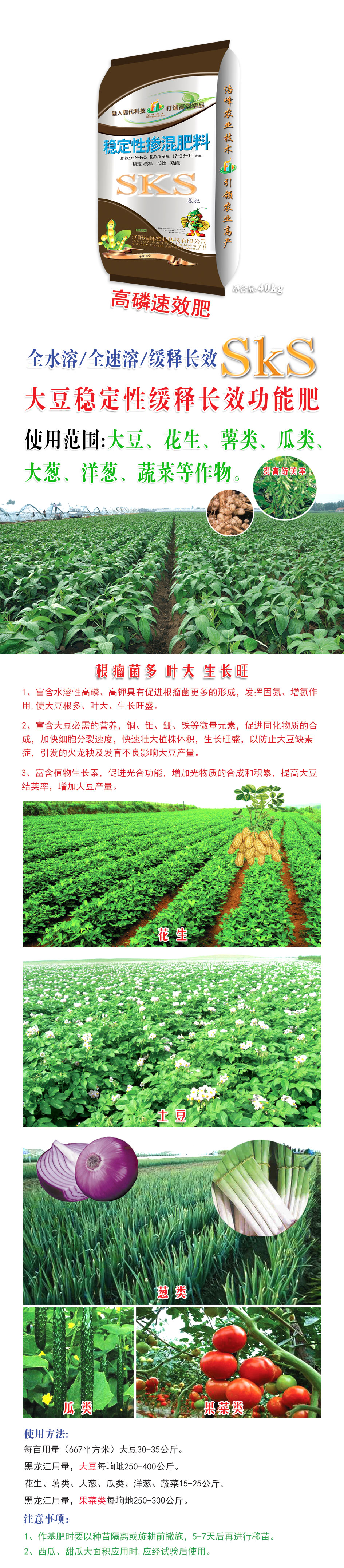1、富含水溶性高磷、高鉀具有促進根瘤菌更多的形成,發揮固氮、增氮作用,使大豆根多、葉大、生長旺盛。